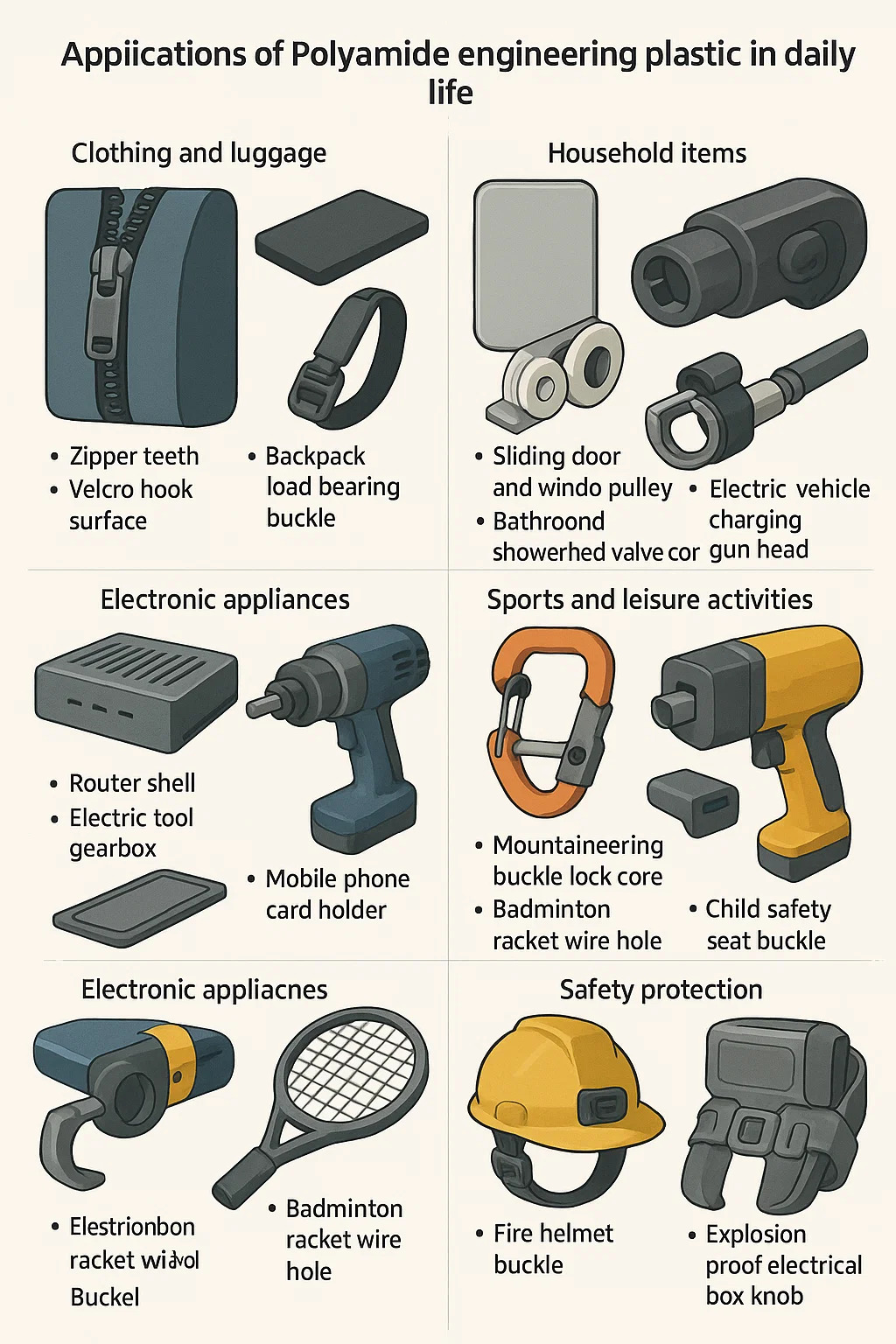এর প্রয়োগ ইঞ্জিনিয়ারিং প্লাস্টিক পলিমাইড দৈনন্দিন জীবনে একাধিক ক্ষেত্রকে ঘিরে রাখে এবং এর মূল মানটি প্লাস্টিকের সাথে ইস্পাত প্রতিস্থাপন এবং হালকা ওজনের এবং টেকসই হওয়ার বৈশিষ্ট্যগুলির মধ্যে রয়েছে। নির্দিষ্ট সাধারণ পরিস্থিতিগুলি নিম্নরূপ: