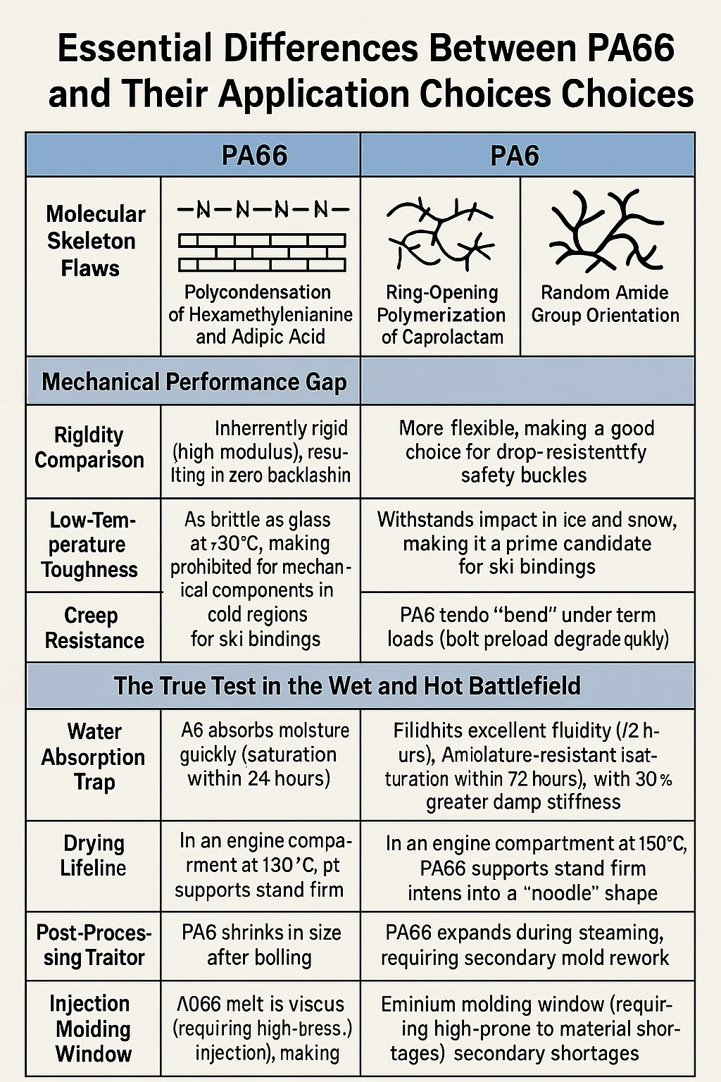 মধ্যে প্রয়োজনীয় পার্থক্য PA66 এবং PA6 এবং Their Application Choices